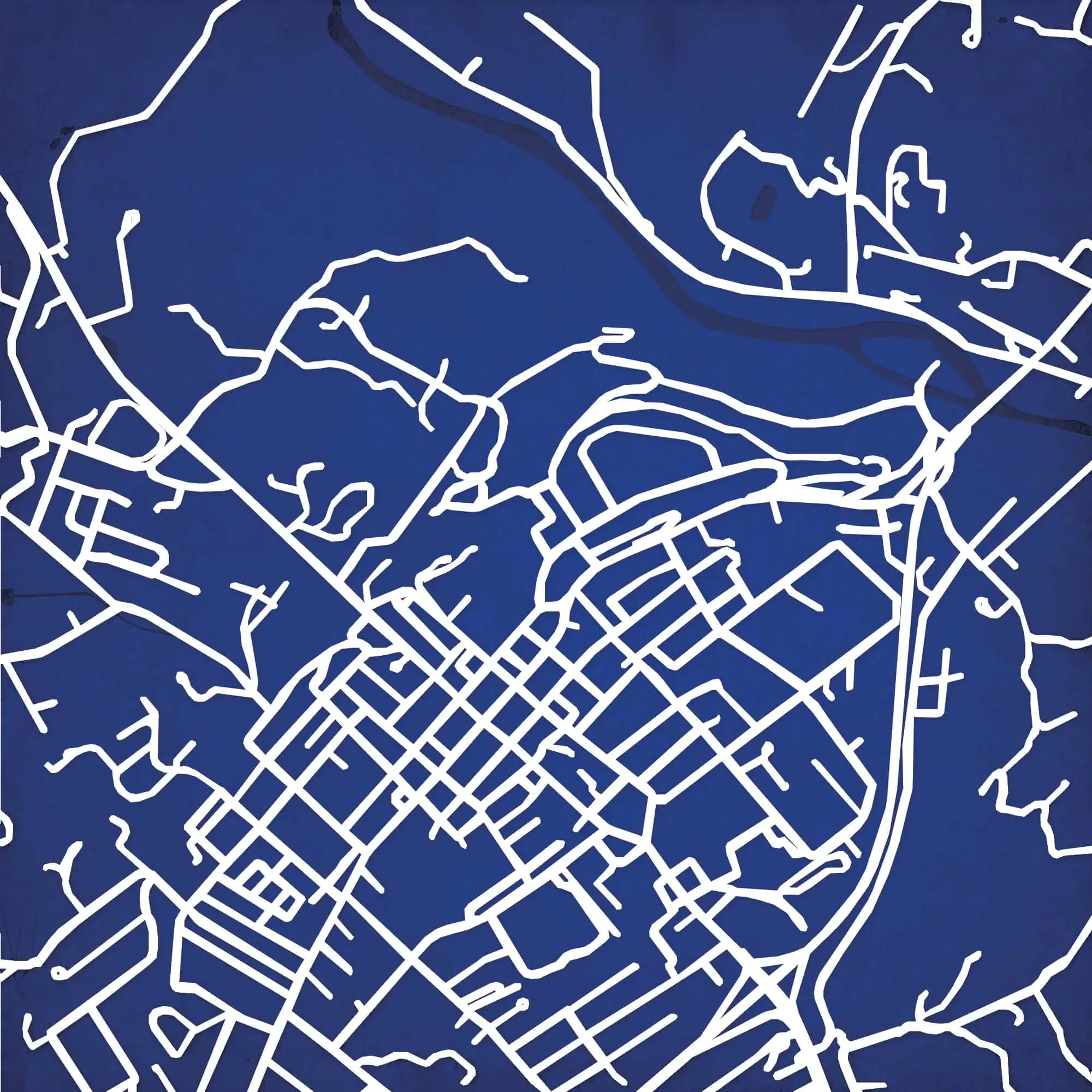 Colorful city map wall art featuring prominent street layouts and urban design, perfect for home or office decor, highlighting city navigation and geographic features.