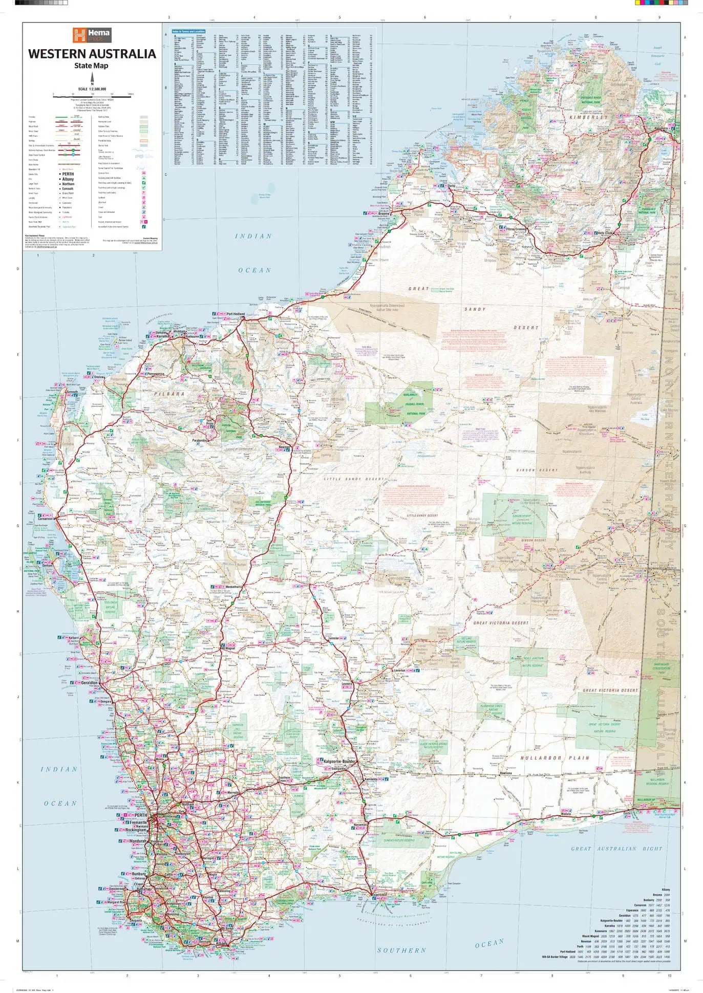 A state map of Western Australia that is an ideal travel reference and wall map.