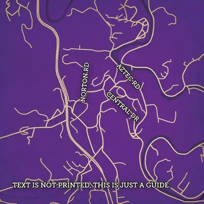 Map art print including Western Carolina University campus located in Cullowhee, North Carolina.