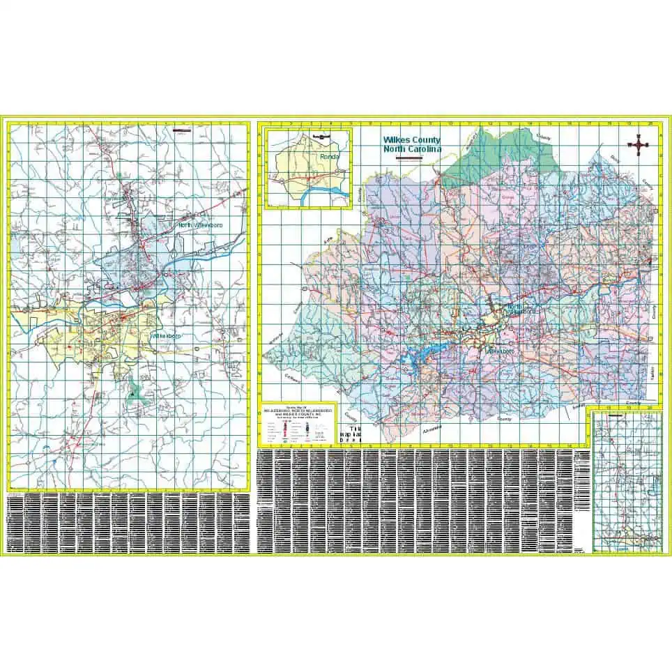 Wilkesboro and Wilkes County, NC Wall Map – 64×48″