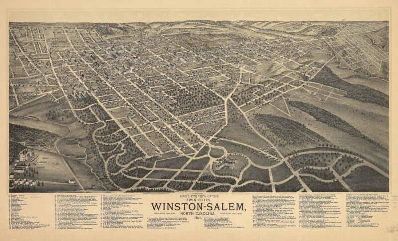 This vintage piece includes numerous well-known Winston-Salem landmarks, and it’s very accurate for 1891: