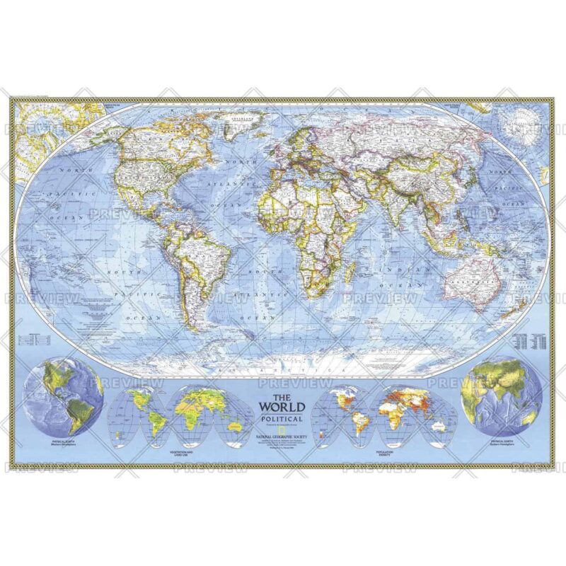 This political world map continues the long tradition of fine cartography for which National Geographic is known. Published in 1994.