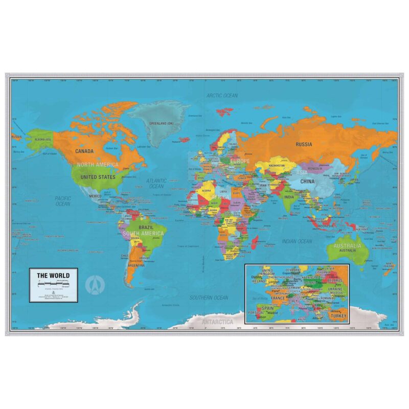 Clear, large, and easy-to-read labels make this perfect for educational uses in elementary schools or home schools. Continents, countries, county capitals, marine areas, and geographic lines are labeled. Accuracy is our first priority and our maps are always up-to-date with the recent geographic changes and we’re constantly updating the data.