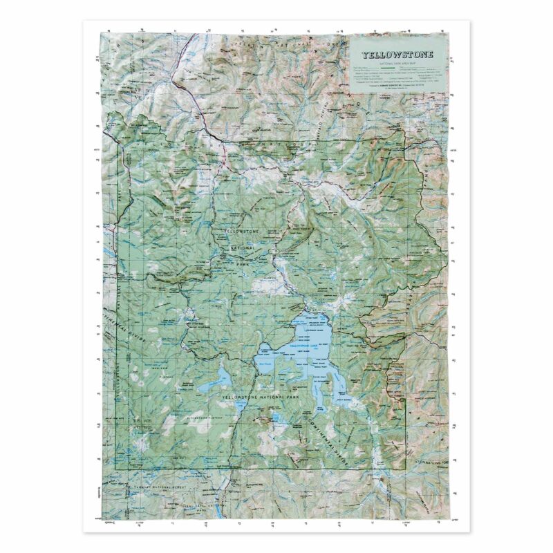 3D raised relief map of Yellowstone National Park with unframed dimensions of 18.5” x 25” This map is printed on 2mm thick high-grade rigid vinyl, then one of our technical artists heat-treats and vacuum-forms each individual print over our custom Yellowstone National Park mold. Home to over 500 active geysers, showcase Yellowstone National Park with a one-of-a-kind and fun to touch 3D raised relief map. It’s wall art, it’s a sculpture, and it’s a functional map!