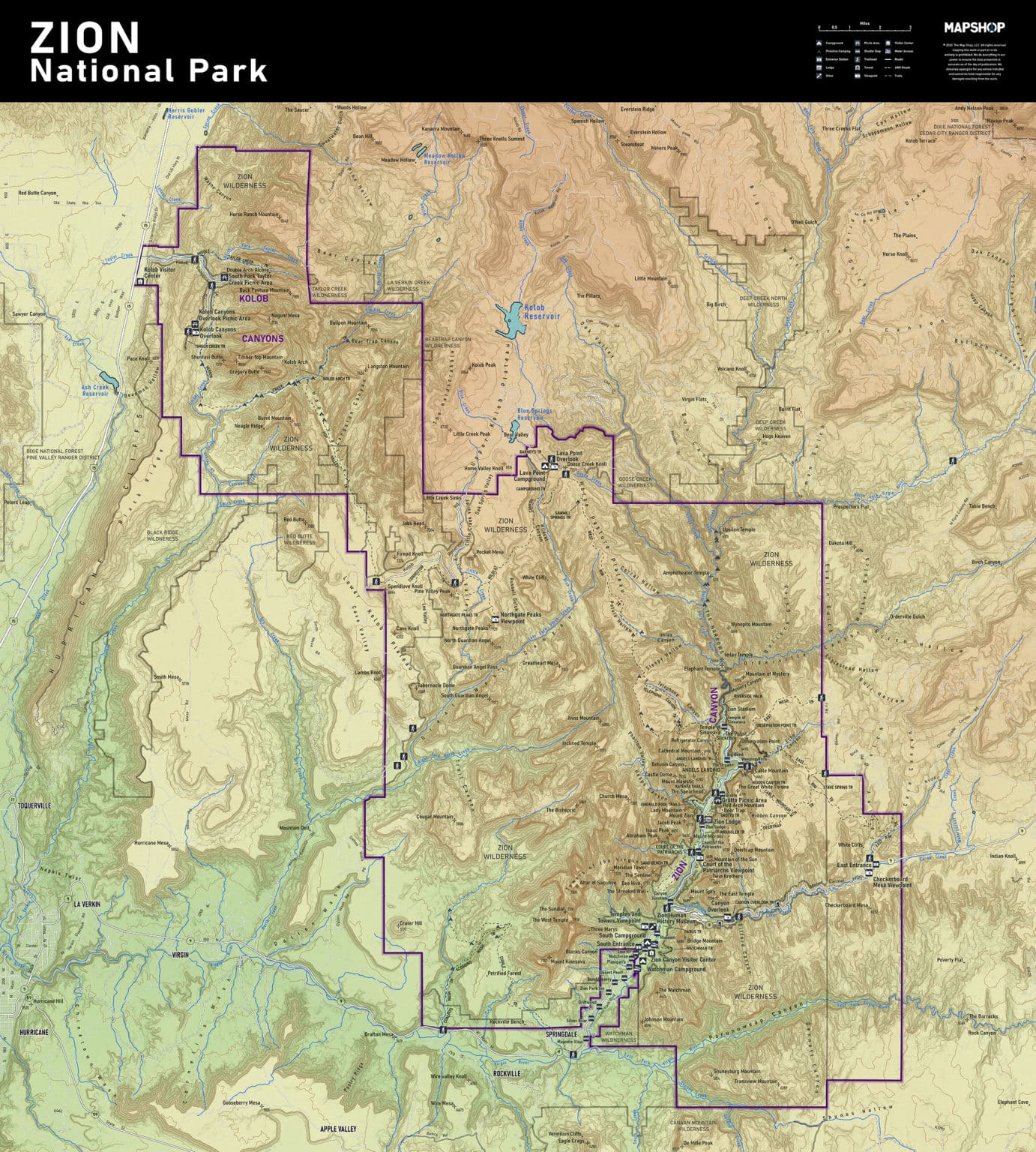 The Map Shop’s goal is simple. We want to inspire adventure, connect customers to past memories, and offer a better understanding of our world. We developed this Zion National Park Map in-house so we’d have complete control over the cartography and design of the map. The result is a map that is as much fine art as it is a geographic reference.